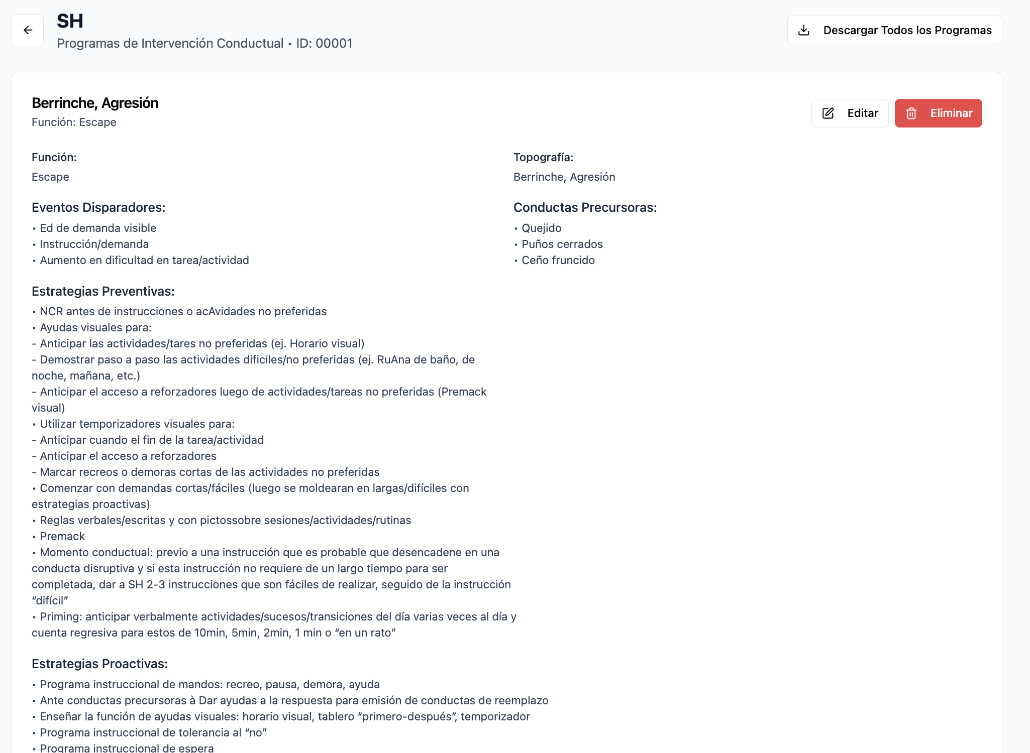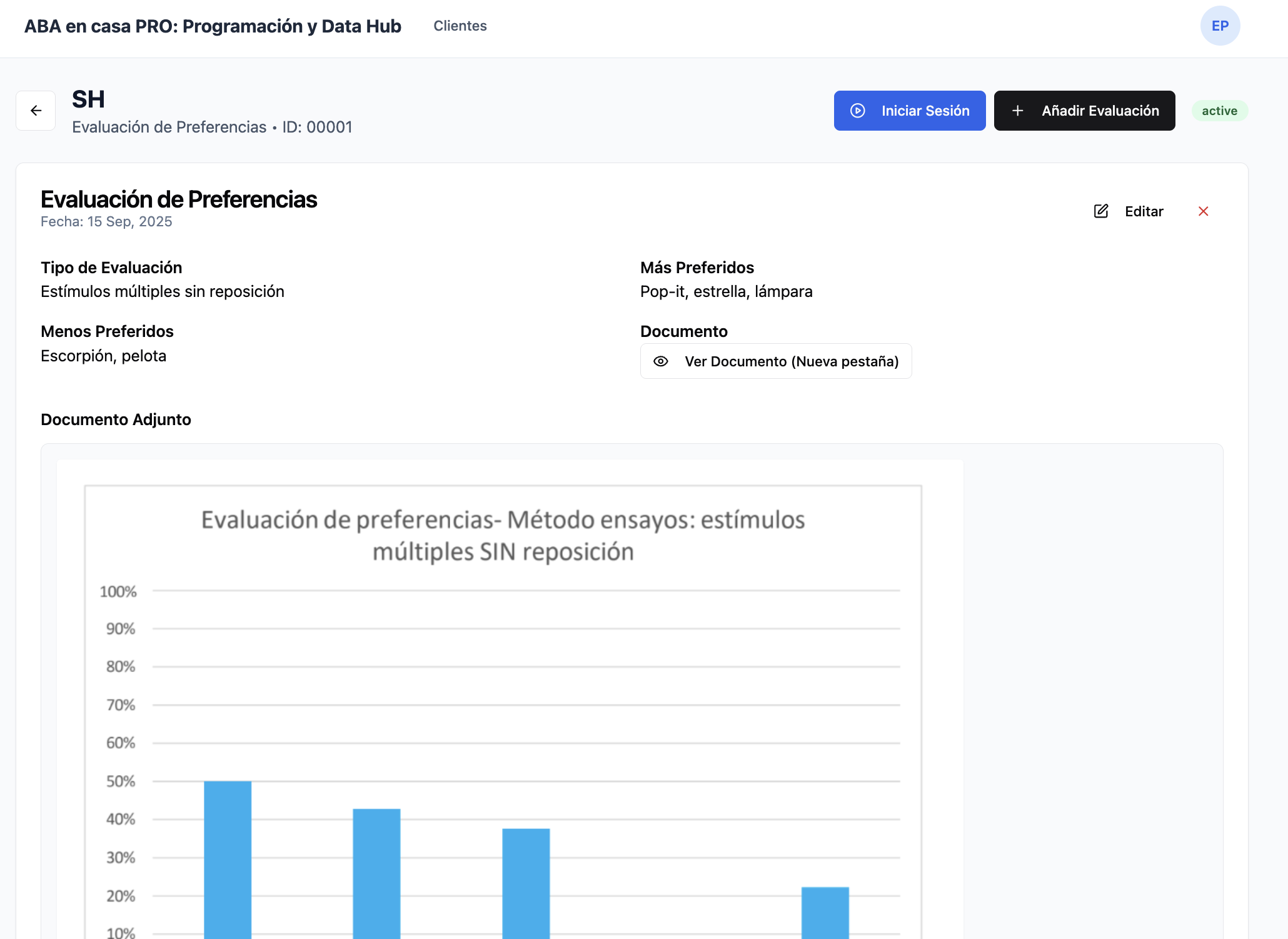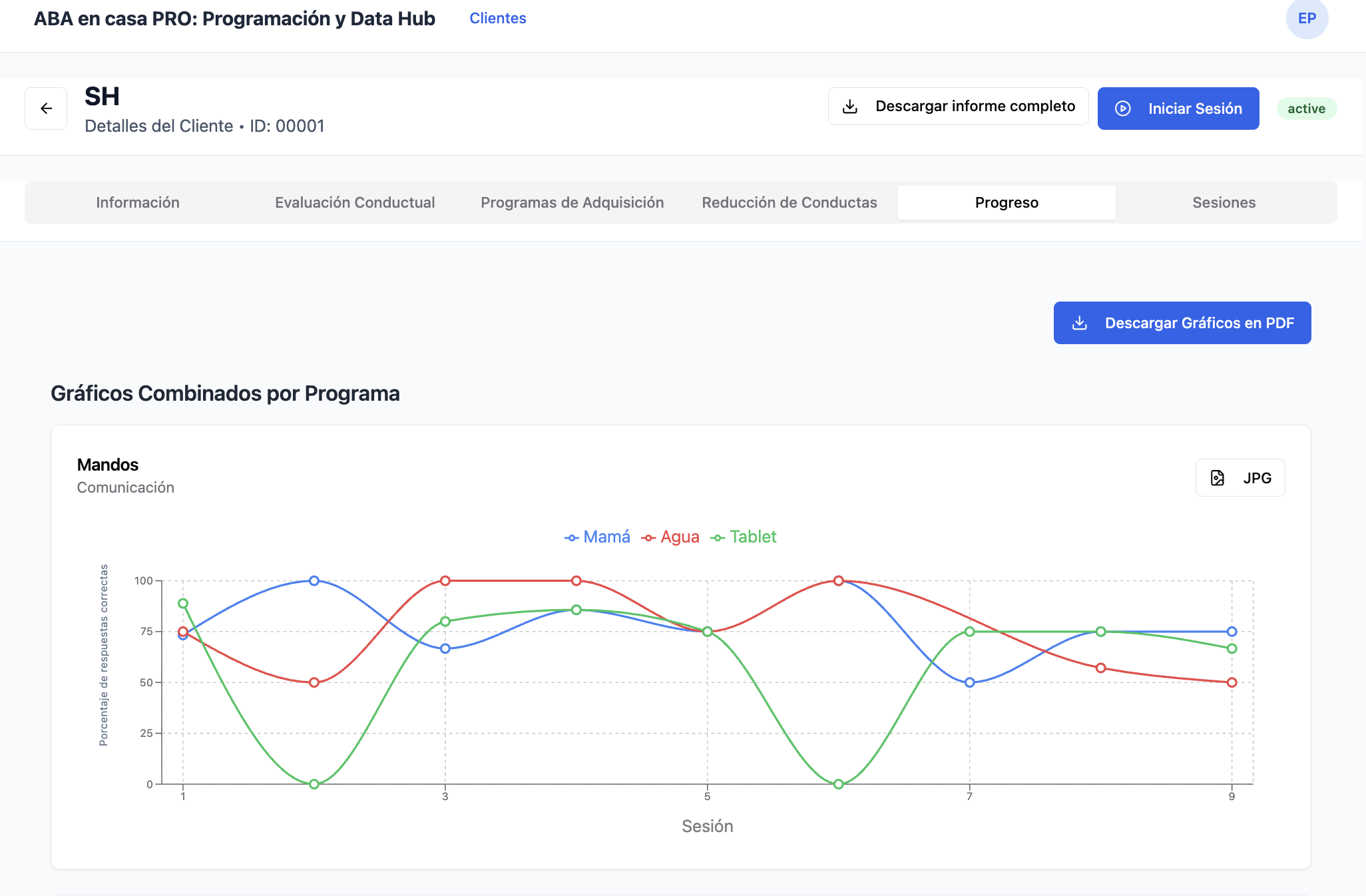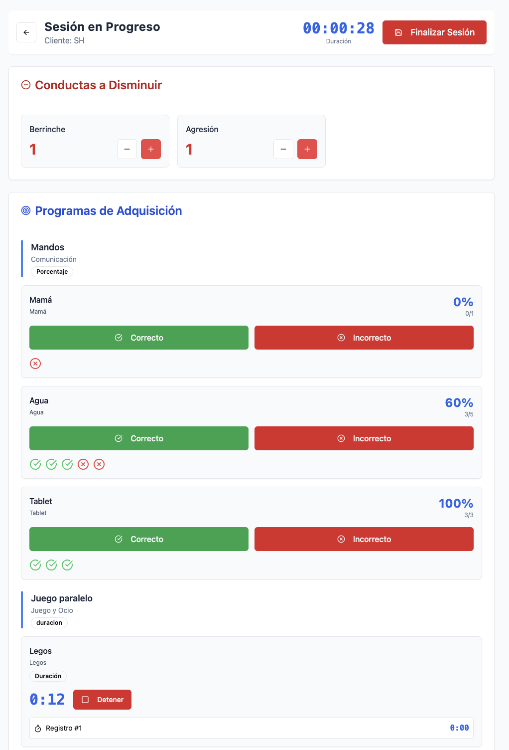 Registrar datos para estos programas en diferentes dimensiones (frecuencia, tasa, porcentaje, duración, latencia, TER, intervalos, etc.)
