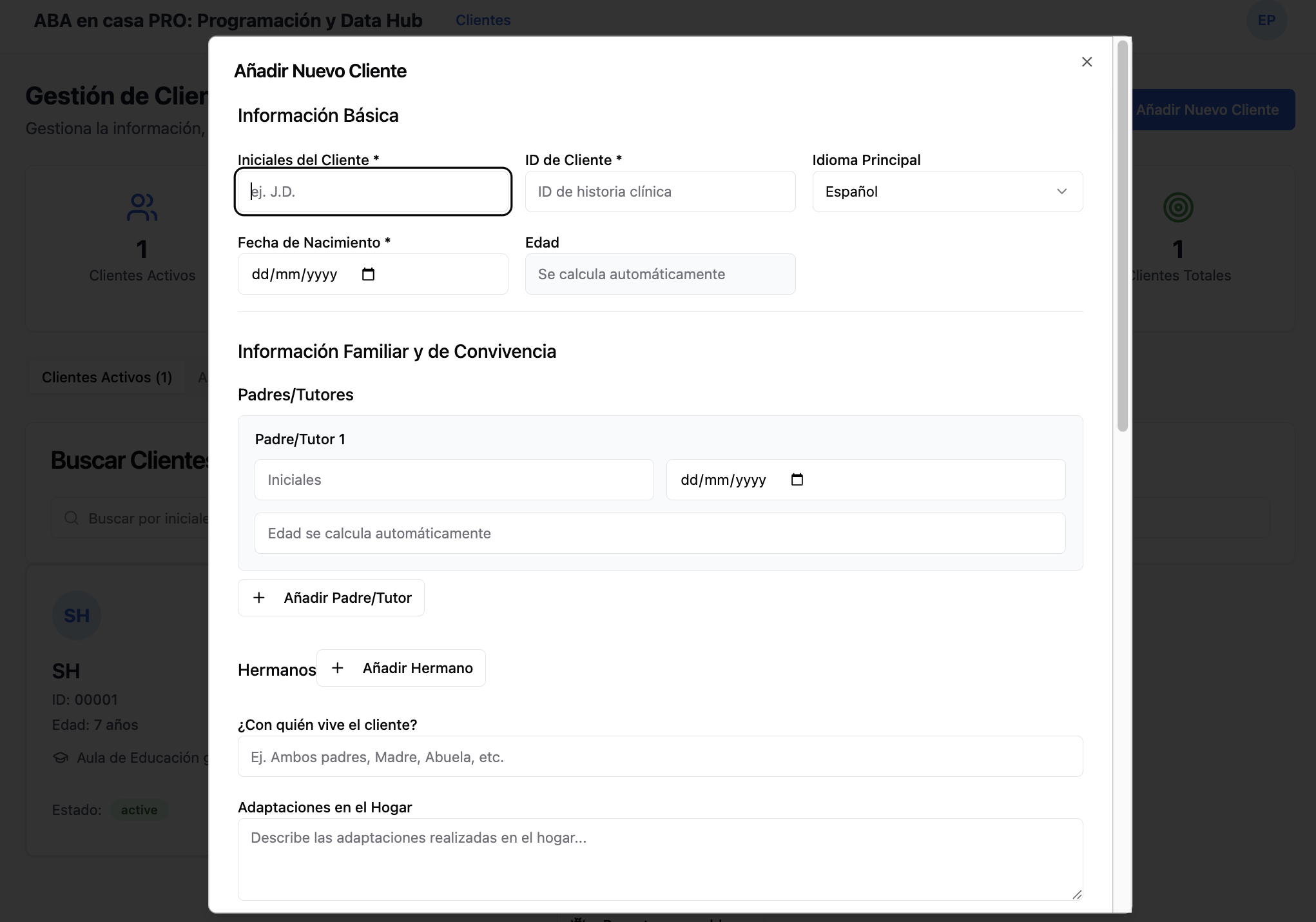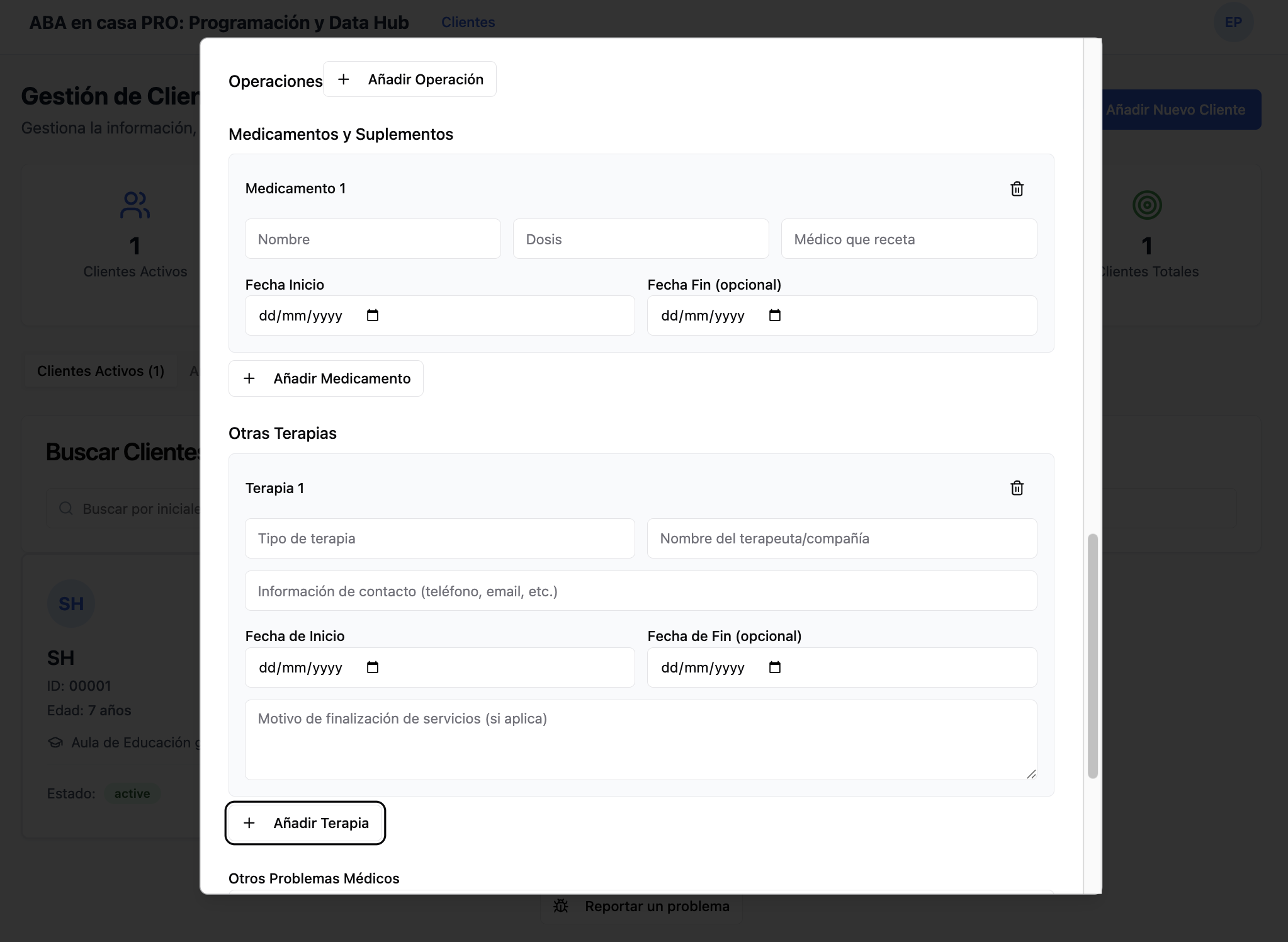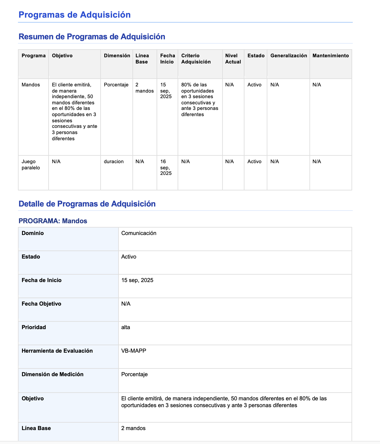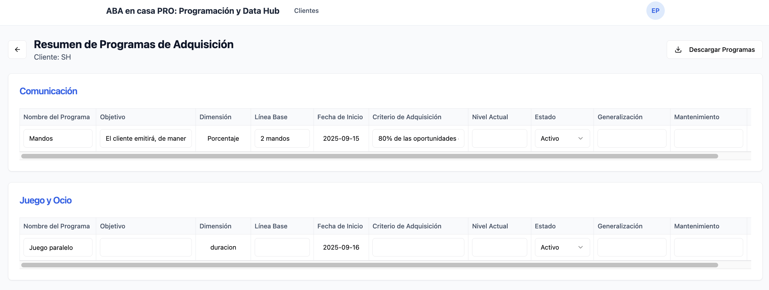 Registrar datos para estos programas en diferentes dimensiones (frecuencia, tasa, porcentaje, duración, latencia, TER, intervalos, etc.)