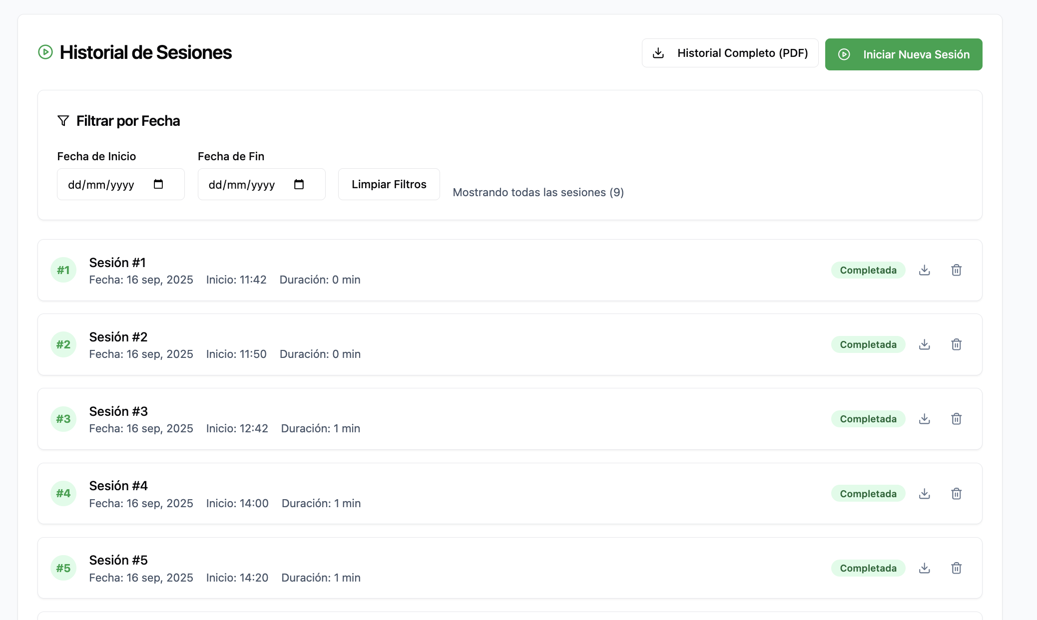 Obtener gráficos automáticos de los datos ingresados luego de cada sesión