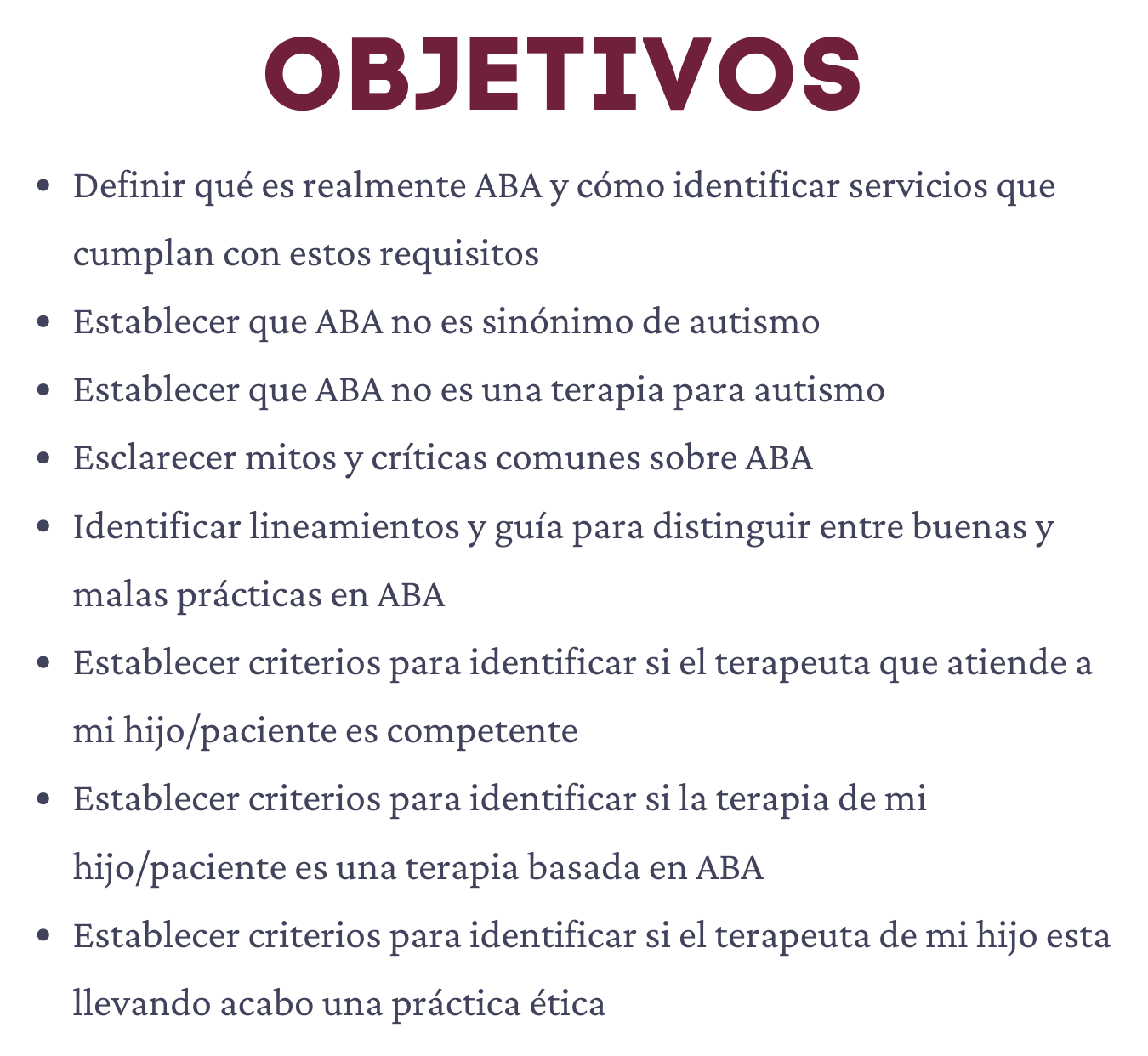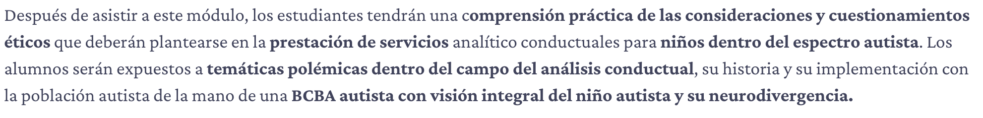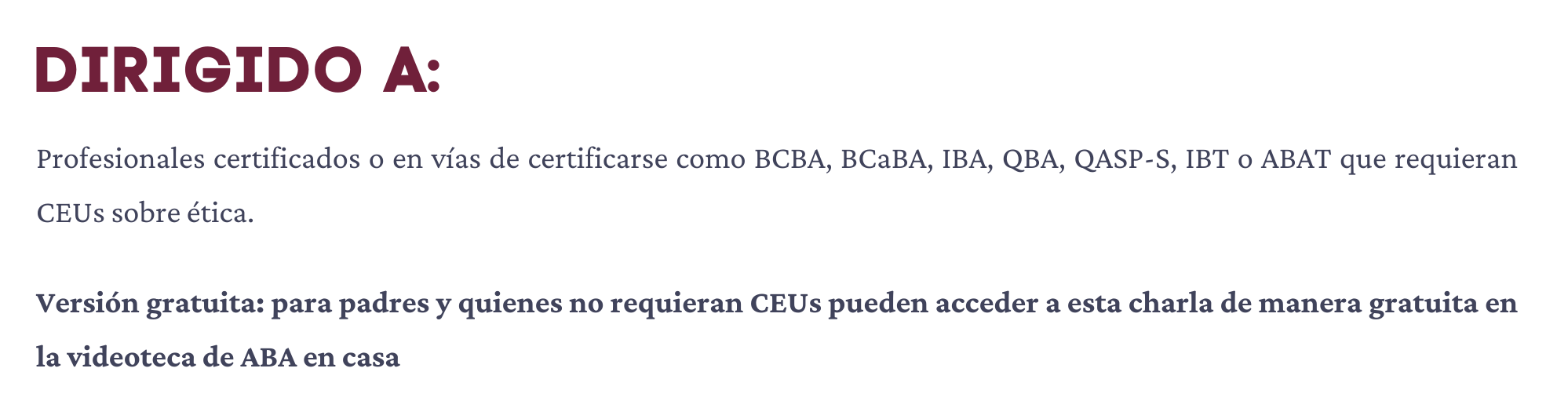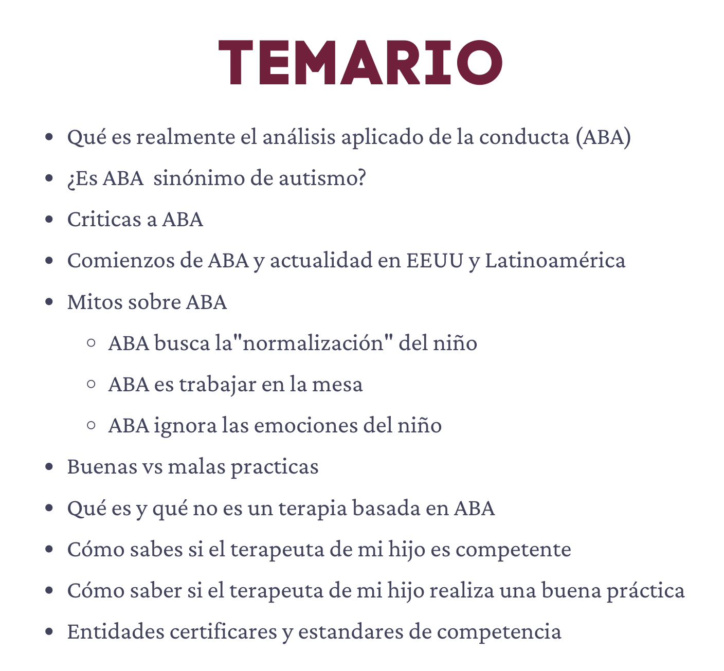 • experiencias en primera persona: dictado por una analista de conducta certificada BCBA e IBA autista, madre de una niña en el espectro