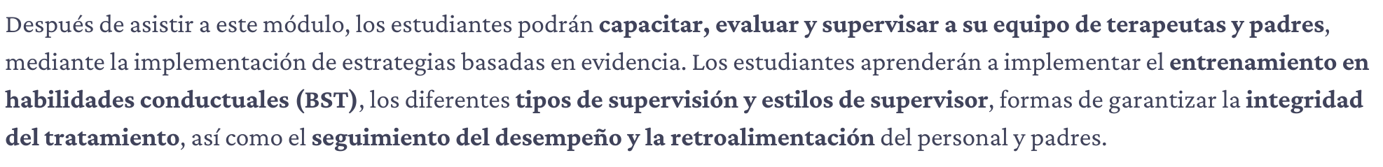 DIRIGIDO A: Profesionales de carreras de analisis del comportamiento, salud y educación interesados en capacitar y/o supervisar personal a su cargo, terapeutas y/o padres, con fines de formación interna o para posterior adquisición de certificaciones oficiales en el campo del análisis conductual.