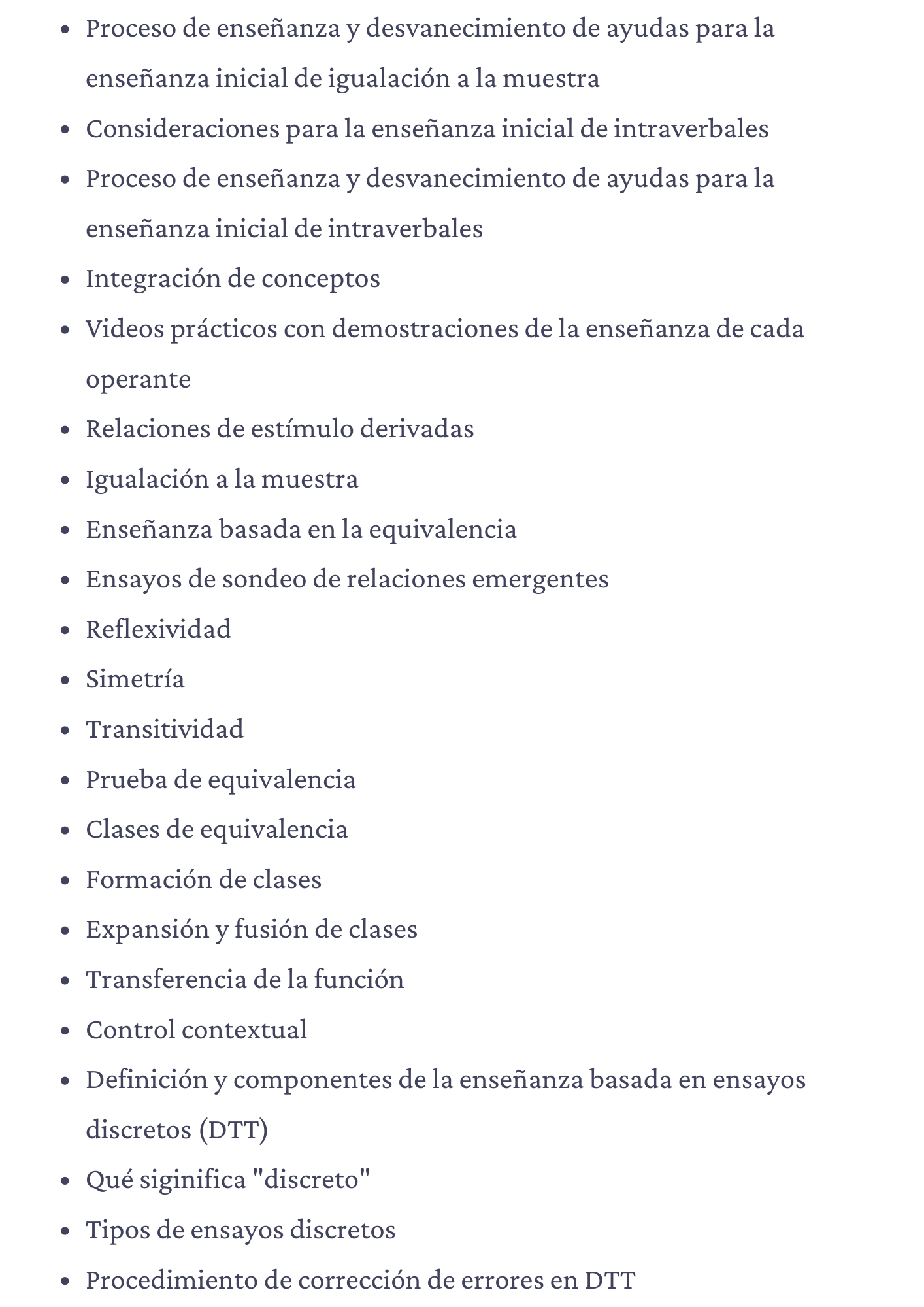 Conceptos analitico conductuales básicos: respuesta, estimulo, contingencia, operante, ABC, etc.