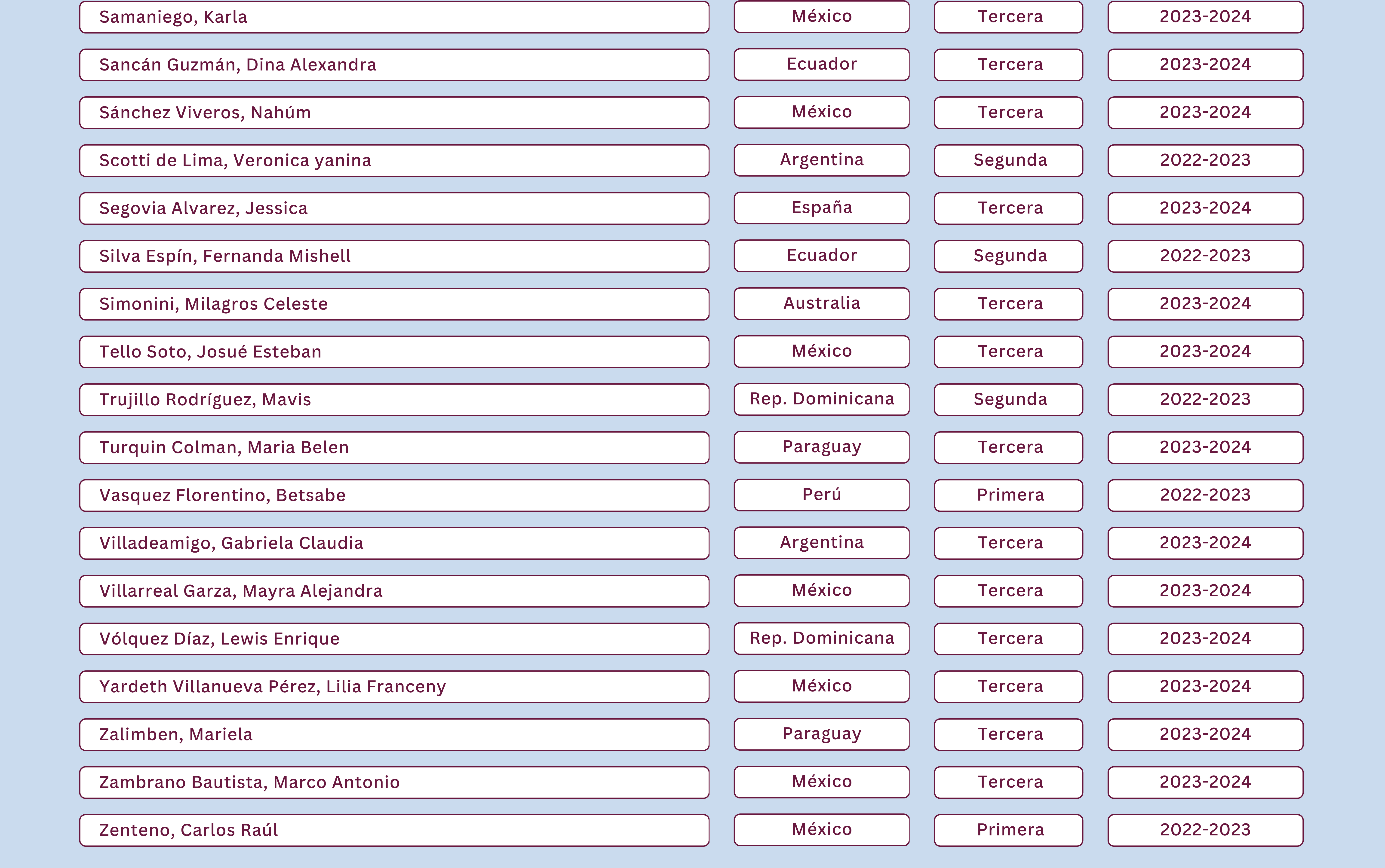 Recomendamos siempre verificar las credenciales de los profesionales que trabajarán con y para ustedes, sean ustedes padres o directores de centros/clínicas, ya que hemos recibido varios reportes denunciando a ex-alumnos que no han aprobado nuestra especialización, e incluso que han sido expulsados de esta por violaciones éticas severas, pero que se presentan ante sus empleadores, potenciales empleadores y familias de niños a los que sirven, como graduados de la Especialización y candidatos a certificaciones oficiales. Reiteramos que SOLO los alumnos mencionados en esta página son quienes han aprobado satisfactoriamente la Especialización en ABA y Autismo, demostrando así tener las competencias básicas necesarias de un analista de conducta para trabajar en el campo del análisis aplicado de la conducta con poblaciones neurodivergentes.