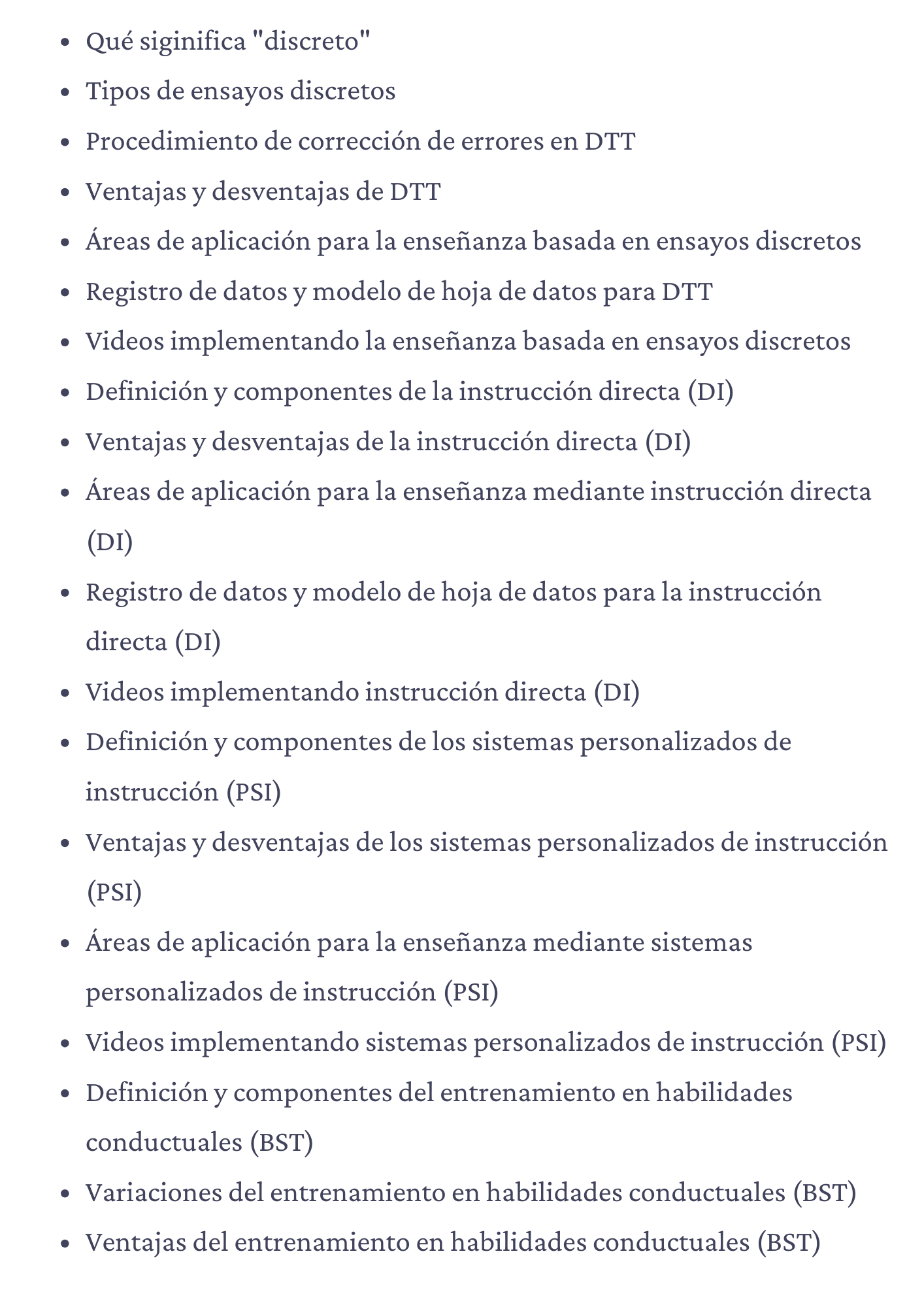 Intervenciones conductuales: paquete completo para la enseñanza de nuevas habilidades