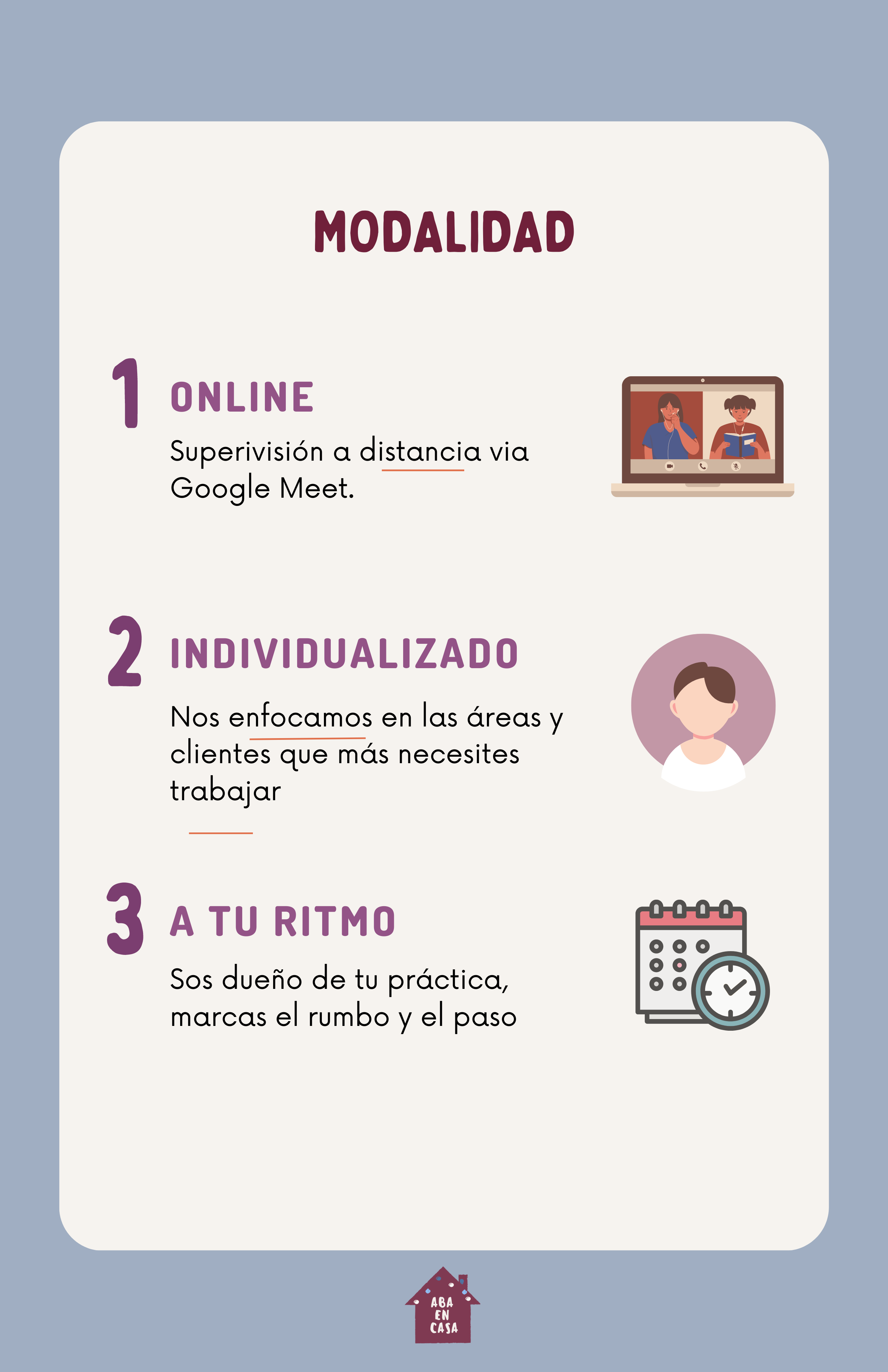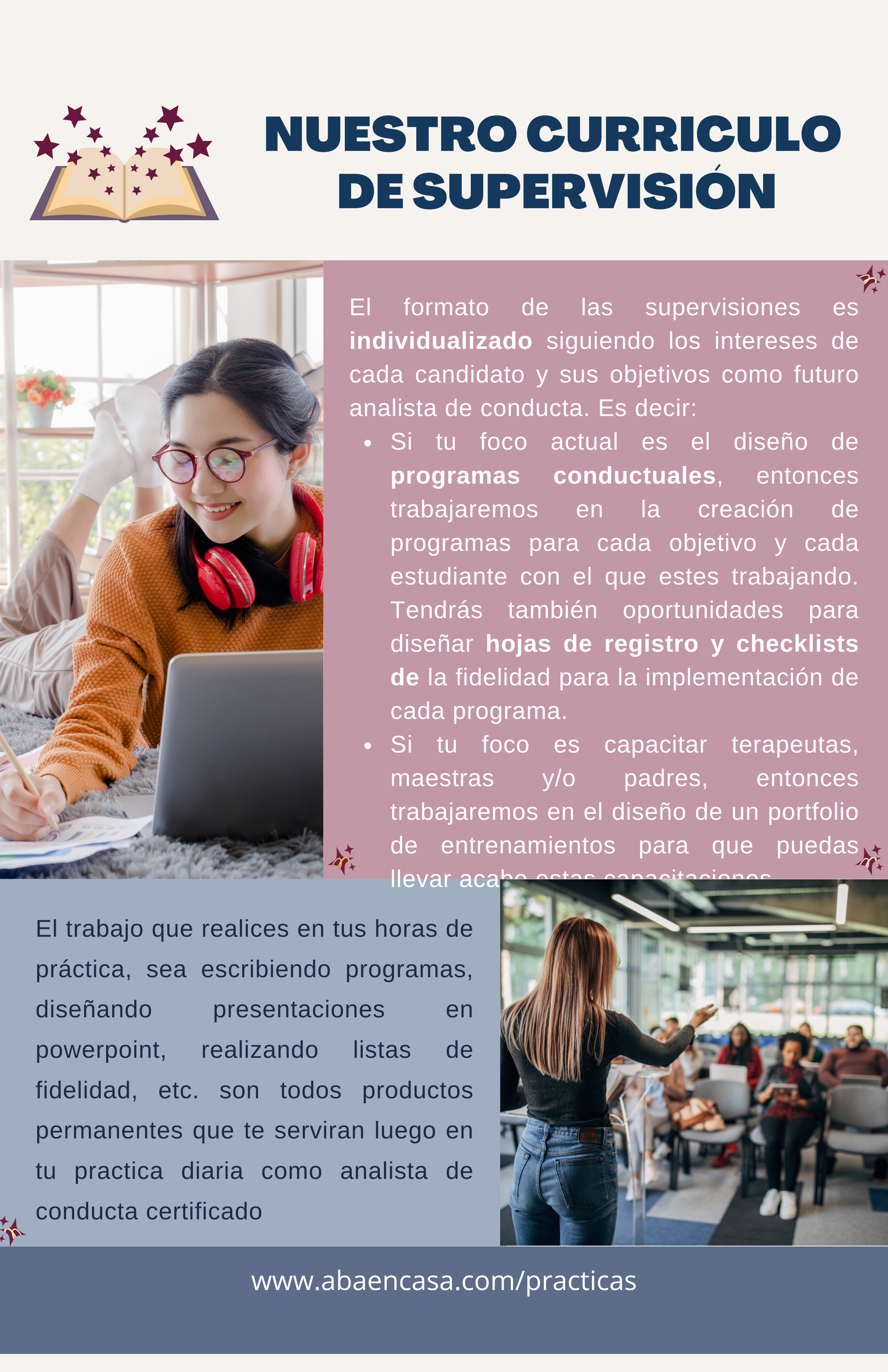 El formato de las supervisiones es individualizado siguiendo los intereses de cada candidato y sus objetivos como futuro analista de conducta.