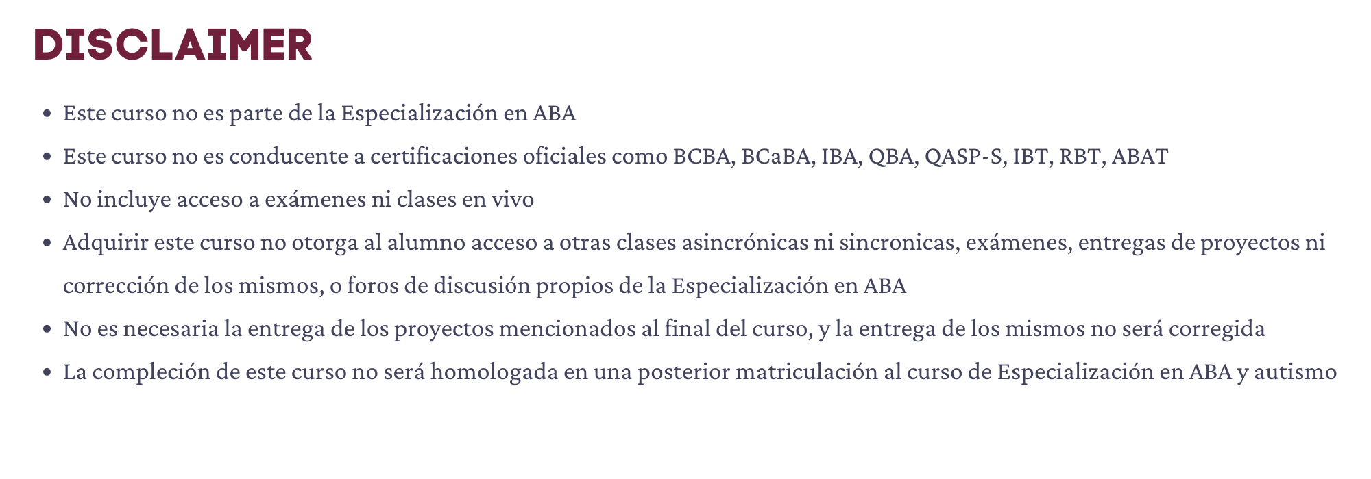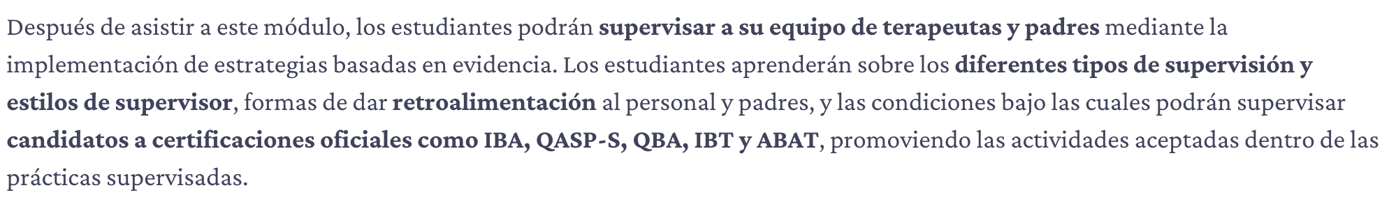 DIRIGIDO A: Profesionales de carreras de analisis del comportamiento, salud y educación interesados en capacitar y/o supervisar personal a su cargo, terapeutas y/o padres, con fines de formación interna o para posterior adquisición de certificaciones oficiales en el campo del análisis conductual.